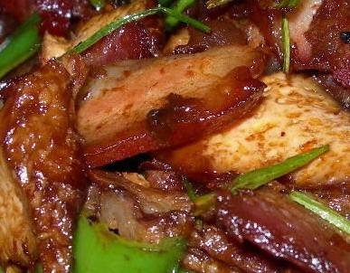 靖港香干細(xì)嫩而緊湊、色鮮而香濃,微咸帶甜而其味純正,非一般豆制豆可比,食之齒頰留芳,余味無(wú)窮。靖港香干可生吃,下酒尤妙,烹調(diào)成菜肴熟吃最佳。靖港特色菜中,就有幾道香干菜,其中香干燜回鍋肉、香干炒韭花和香干炒芹菜就常常堂而皇之地亮相于大小宴席,深得食客喜愛(ài)。