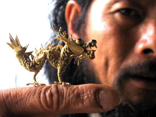 長(zhǎng)沙地區(qū)的傳統(tǒng)工藝品,系用棕櫚葉編成的各種動(dòng)物,種類很多,如鳥(niǎo)、蟲(chóng)、魚(yú)、蝦、鶴、蛇等,形象逼真,栩栩如生。曾參加德國(guó)萊比錫世界博覽會(huì),人們贊嘆它“不可思議”,法國(guó)藝術(shù)館特意收購(gòu)珍藏。棕櫚為常綠喬木,望城縣湘江兩岸都有種植,藝人們采集棕葉,編織成各種小動(dòng)物,成為“江南一絕”。