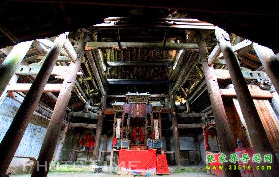 土司祖師殿位于老司城太平南麓,始建于后晉天福二年(公元937年),重建于明代。正殿柱大數(shù)圍,上架木枋處無斧鑿痕跡,相傳為魯班顯靈所建。此殿占地580多平方米正殿面闊五間,進(jìn)深四間重檐歇山頂,長(zhǎng)17.5米,寬13米,高20米,全木材結(jié)構(gòu),永34根大柱支撐屋頂。柱礎(chǔ)用雙曡圓鼓式,殿脊殿檐是圖案精致的陶磚陶瓦。殿中金柱前,砌有神龕一座,上供“祖師”神象。殿宇斗拱雄偉古樸,梁架結(jié)構(gòu)頗為特殊,是土家族地區(qū)頗具民族特色的建筑,為湖南省重點(diǎn)文物保護(hù)單位。