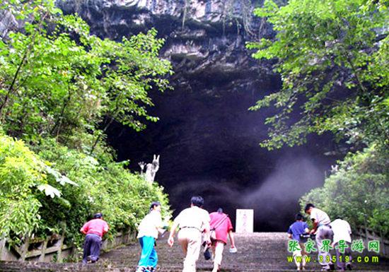它位于皮渡河下端懸崖絕壁中,是貫穿山脈的大石窟。它高150米,深400米,平均寬5米,底部呈斜面梯形向上,看上去與天際相連,由此得名通天門。