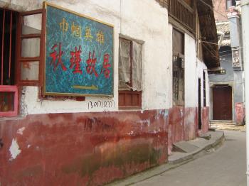 秋瑾故居位于湘潭市十八總由義巷。這位近代史上杰出的巾國英雄、婦女解放運(yùn)動的先驅(qū),在這里度過了8個春秋。離大碼頭不遠(yuǎn)處有一條寬敞的小巷叫由義巷,巷兩旁墻高院深,大多是官紳富商之家,也開設(shè)了幾家當(dāng)鋪、錢莊。進(jìn)巷口十多丈遠(yuǎn)處,有一棟青磚青瓦麻石門樓的鋪面,大門上首有一塊漢白玉石刻招牌“義源當(dāng)”,這是湘潭有名的義源當(dāng)鋪。