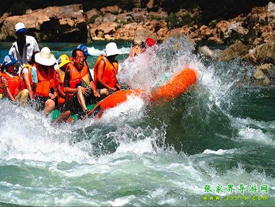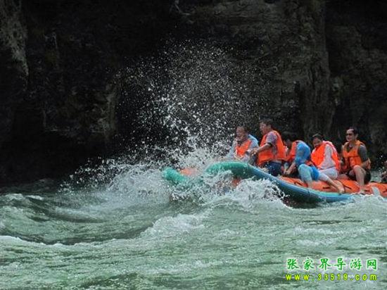 茅巖河漂流段是大庸城西20公里青魚潭往北一段。茅巖河雖灘險流急,但河床坡度小,水位落差不大;險灘較短(一般僅20余米長),而險灘與險灘間的距離卻較長(一般均逾千米),故浪濤適中,漂流有驚無險。茅巖河主要景點(diǎn)有:血門溝、洞子坊、茅巖灘、夾兒溝、溫塘溫泉、麻陽古渡、茅巖河峽、水洞子瀑布等。沿河兩岸青山綠水、風(fēng)光如畫,故又稱“百里畫廊”。