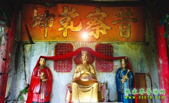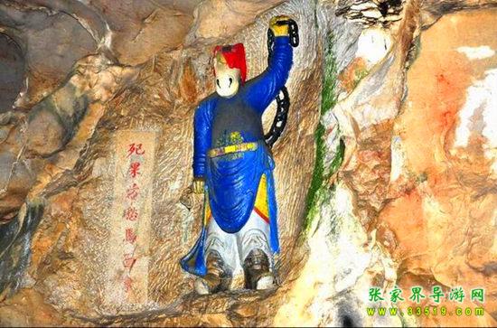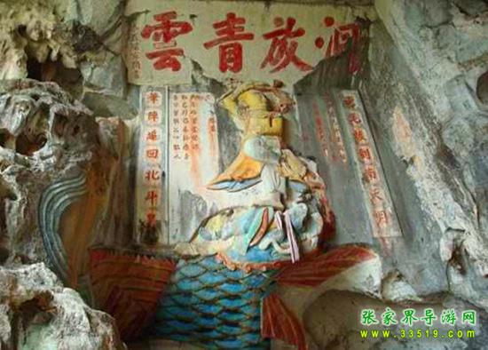 玉皇洞石窟位于張家界城西約7公里的麻空山南壁,為清代本地鄉(xiāng)紳李京開獨(dú)資捐修。李京開又叫李五瑞,別名九洞樂,號識破生。他生于乾隆七年(公元1742年),道光乙酉年(1825年)去世,享年83歲。李先生家道殷實(shí),富甲一方。少時勤奮讀書,頗有才華,數(shù)十年奔波仕途,但屢試不第,官場無望,于是看破紅塵,另尋安慰,請工匠,耗巨資,憑借麻空山天然溶洞,按上、中、下方位布局,巧妙構(gòu)思,開鑿成“天堂”、“人間”、“地府”三層共八個洞。另外,在離此約3公里的峰泉洞另鑿一洞,故有“九洞樂”別名。玉皇洞石窟上層為玉皇洞,人間層有玉金洞、毫筆洞、墨池洞、虎龍洞、雄獅洞、孔圣洞,地府為因果洞,八洞組成一個完整的混沌世界。居八洞之首的玉皇洞,雕有玉皇大帝神像,意為“天堂”至尊,統(tǒng)帥中層的“人間”和下層的“地府”,故八洞統(tǒng)稱玉皇洞。此洞于1799年動工,到1807年完成,歷時八年。洞內(nèi)雕鑿了一些歷史人物的神像以及大量詩詞匾對,不僅石雕精湛獨(dú)特,雕像神韻生動,書法遒勁大氣,而且在石窟藝術(shù)的主題構(gòu)思上,抒發(fā)了主持捐修者李京開懷才不遇、憤世疾俗、向往太平盛世的情感,鞭達(dá)了腐朽的科舉制度,對于研究清代社會和科舉制度,以及當(dāng)時一般讀書人的思想情感,都具有一定的史料價值。整座洞窟東西長300余米,現(xiàn)存石像19尊,石刻50多處,是湖南省唯一保存完好的石窟藝術(shù)群,1959年玉皇洞被列入湖南省重點(diǎn)文物保護(hù)單位。