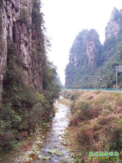 百丈峽是武陵源風(fēng)景名勝區(qū)通往張家界市的公路貫通整個峽谷,因有堵高近百丈的石壁,直插云霄,不敢仰視,故而得名。據(jù)《慈利縣志》載,索溪峪右得百丈峽,峽長三十公里……又相傳向王天子起義軍與官兵在此先后博殺一百仗,依此又名百仗峽。明代九永兵備胡桂芳,一生好游歷山川,來到百丈峽后題寫了一首七言詩:“峽高百丈洞云深,要識桃源此處尋;戎旅徐行風(fēng)雪緊,誰將興盡類山蔭。”刻于峽內(nèi)道旁石壁上。