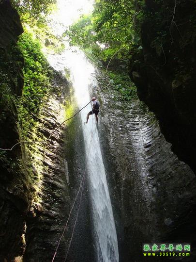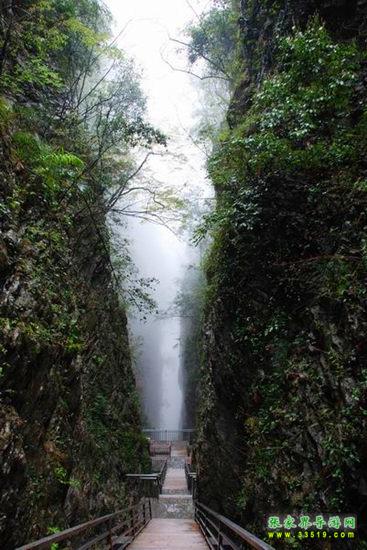 【一線天】來(lái)到這里,讓我們好好欣賞一下我們即將穿越的一線天峽谷絕壁吧。一線天峽谷,又叫西天門,宛若張家界大峽谷開(kāi)啟的一扇大門,在歡迎大家的到來(lái)。不過(guò),這扇大門雖然很大很高,可是很窄小,這就給予了我們幾乎零距離體驗(yàn)峽谷絕壁的機(jī)會(huì)。三千翠微峰,八百琉璃水。這是對(duì)張家界奇山異水的贊譽(yù)。可是,我們?cè)?a class="insidelink" href="http://www.16money.com/" title="張家界">張家界其他景區(qū)游覽的時(shí)候,大多只是遠(yuǎn)觀或者是眺望張家界的奇山異水,一直沒(méi)有近距離體驗(yàn)和觸摸的機(jī)會(huì)。今天,我們就能夠近距離接觸我們張家界的神奇山水啦。這是我們來(lái)自××(客人所在地名)的各位的福氣呀。從我們所在的位置垂直向下,一直走到峽谷底部,步行的游道為700多米,垂直高差為300多米。