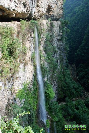 【神泉峽】有請(qǐng)各位朋友注意,我們行走到這里,您會(huì)發(fā)現(xiàn),峽谷在這一段猛然一下子收縮了,變得越來(lái)越窄了。這段很窄的峽谷叫做神泉峽,總長(zhǎng)300余米。在神泉峽,我們要穿過(guò)兩處水簾瀑,請(qǐng)大家保護(hù)好自己的攝像機(jī)、照相機(jī)等貴重物品,以免打濕受損。同時(shí)還要注意腳下,慢慢行走,因?yàn)檫@一段的木板棧道很滑。