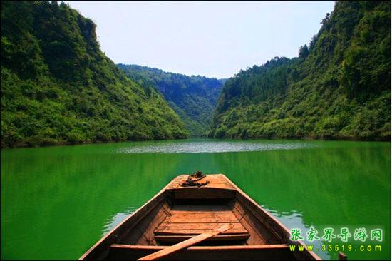 【神泉湖】我們現(xiàn)在乘坐游船游覽的就是我們張家界大峽谷的神泉湖,一個(gè)充滿詩(shī)意的地方。湖水干凈清洌,宛如一面明鏡,山在水中,水在山中,湖光山色,美不勝收。湖水主要來(lái)源于溪水、地下水和雨水,生活著各種淡水魚類,比如青、草、鰱、鳙這樣的湖南省四大家魚,還有國(guó)家二級(jí)保護(hù)動(dòng)物娃娃魚。神泉湖湖域面積近200畝,綠樹(shù)翠竹倒映水中,讓我們心曠神怡。大家慢慢享受吧。