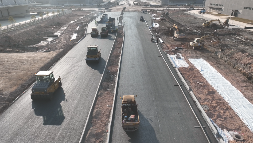 富山工業(yè)園二圍北片區(qū)園區(qū)配套道路工程是斗門大橫琴5.0產(chǎn)業(yè)新空間的重要配套,為二圍北逾200萬平方米的廠房提供交通、水電等配套設施,包含13條市政道路,總長約 15.55公里,建設意義重大,大橫琴股份為確保項目高效推進,克服地質(zhì)條件復雜、施工界面狹小等重重難關,調(diào)集“人馬”,對緊要工序安排24小時連續(xù)作業(yè),對危險性不高、工期緊迫的工序安排雙班作業(yè),與時間賽跑。