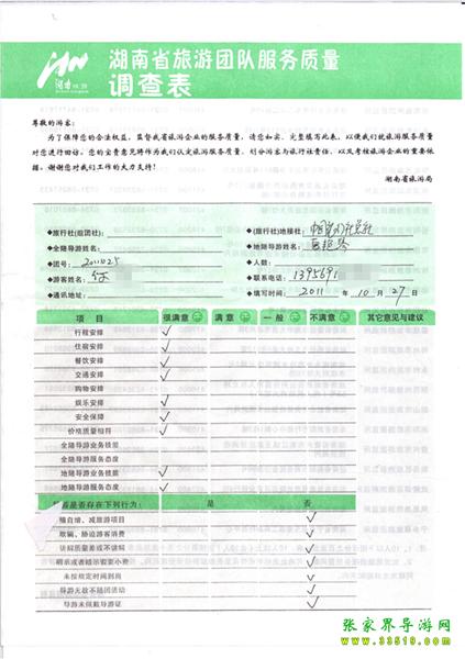 2011年10月27日付先生旅游質(zhì)量反饋