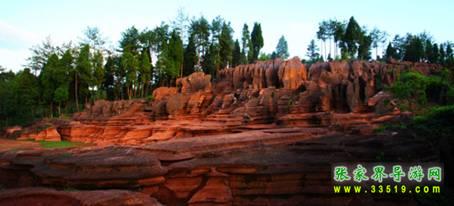 之前在張家界,那里的山形成于三億八千萬(wàn)年前,覺(jué)得特強(qiáng)大,現(xiàn)在到了紅石林,才知道什么叫時(shí)間不等人。紅石林正好處在張家界至湘西這條旅游黃金 走廊的中間位置。景區(qū)里有蜀犬吠日、乳燕待哺、蝸牛搬家、樓蘭古城、七彩迷宮等等,另還有地下溶洞,絕壁天坑,千年古木等,整個(gè)景區(qū)融紅、秀、峻、奇、 絕、古于一身,堪稱(chēng)“武陵第一奇觀(guān)”。